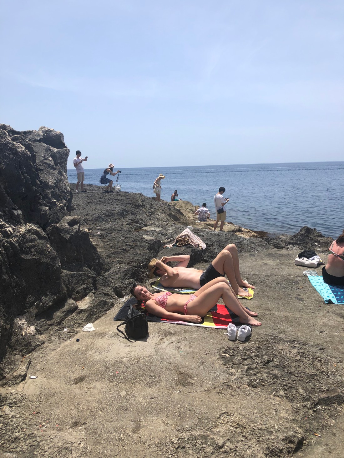 Swimming off the rocks – see Mike in the middle!