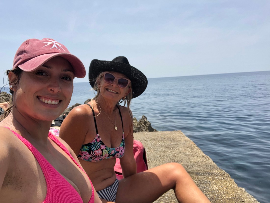 Steph and Sue sitting on the edge spotting the jellyfish – there are still a few around as the waters not so warm yet.