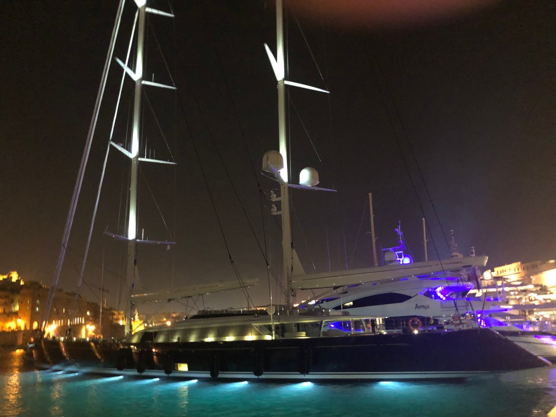 Strolling back this super “Super yacht” moored and lit up in the harbour – Mandango – built in New Zealand – about 54 meters long!