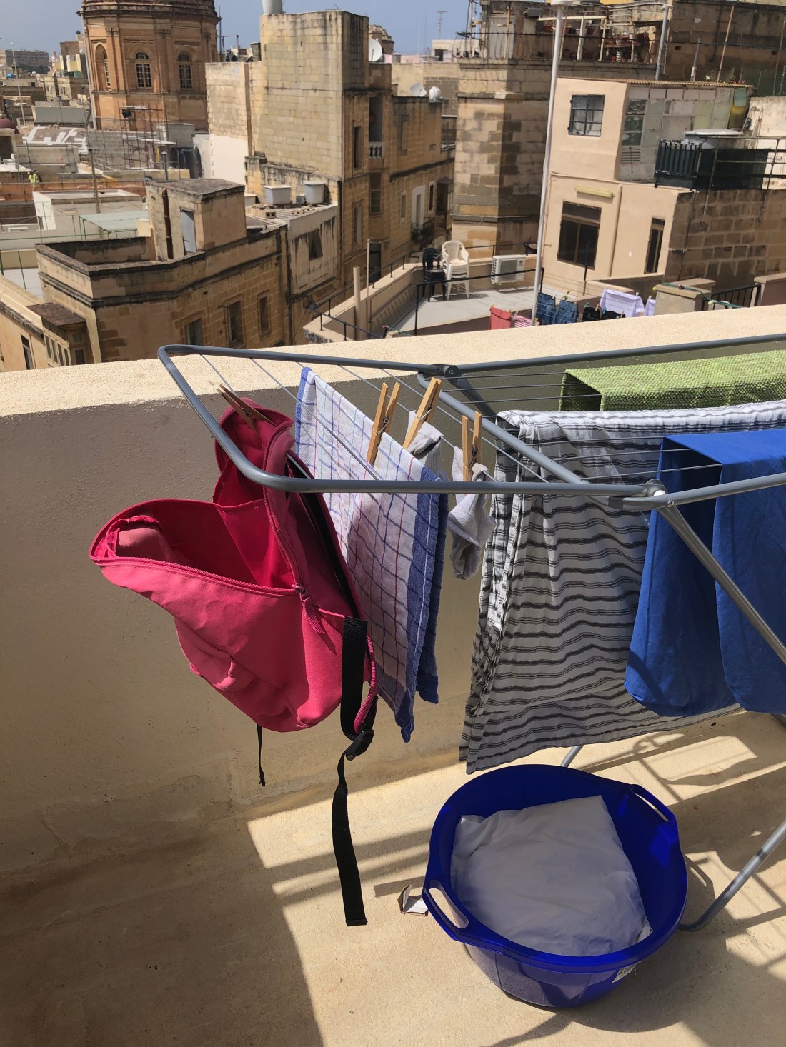 Even the pink backpack got a wash! Along with sheets, towels, mats, deck, floors, steps, bathrooms, kitchens and feet!