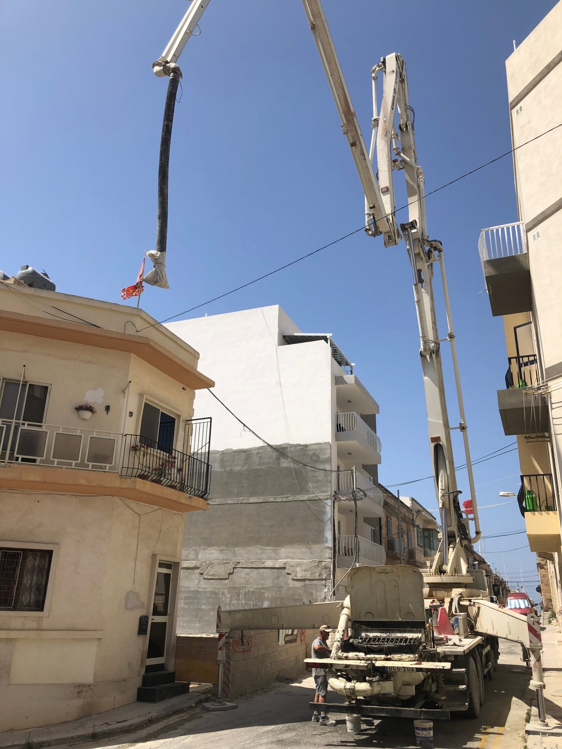 The “elephant” crane blocking their street upon pick up. Talking to the operator (driving this thing by remote) this crane (concrete pump) is actually called “elephant”