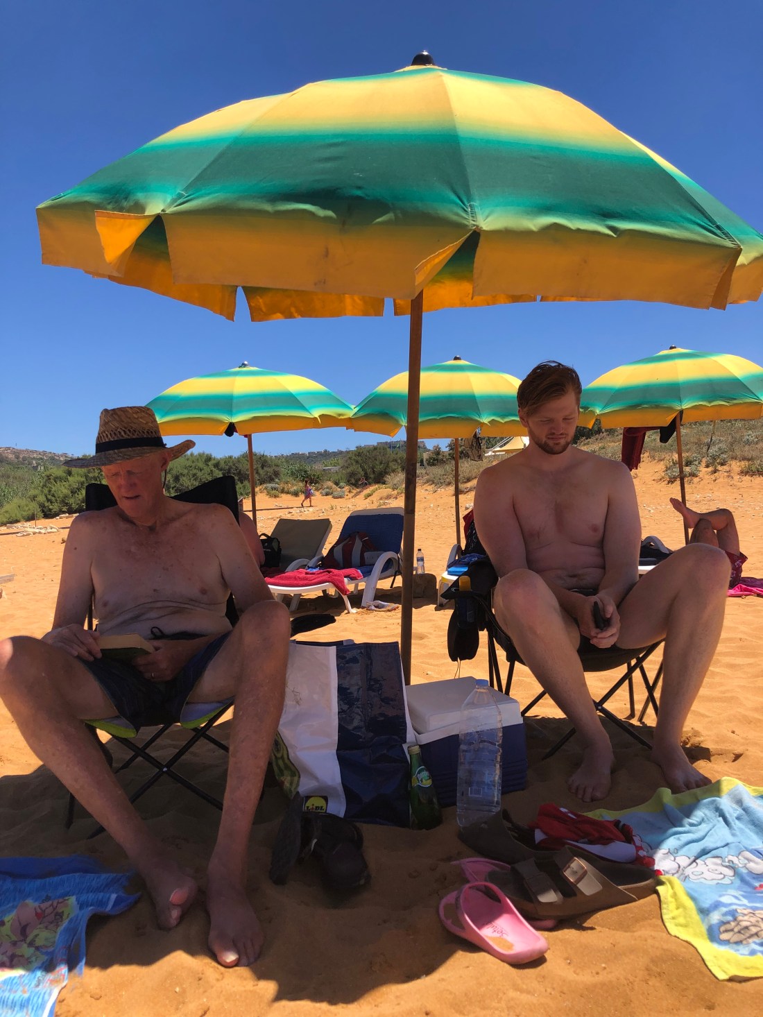 A five euro brolly much needed for the Carter side of the family. The water was lovely the beach was sandy, and we were in for a very enjoyable afternoon.