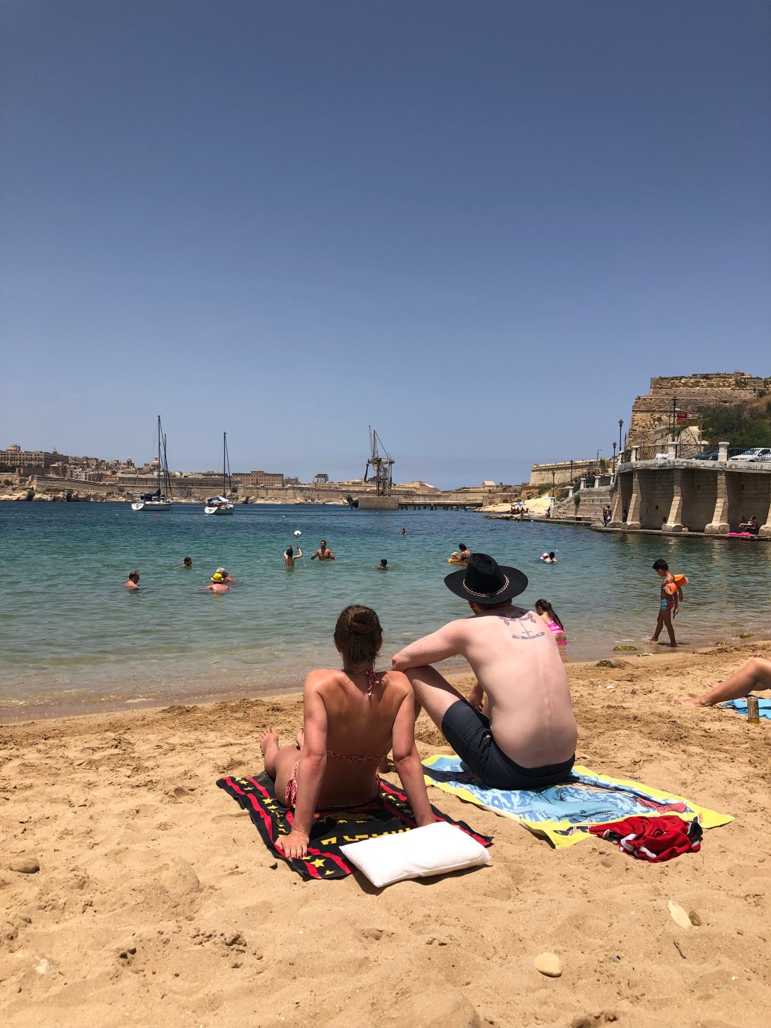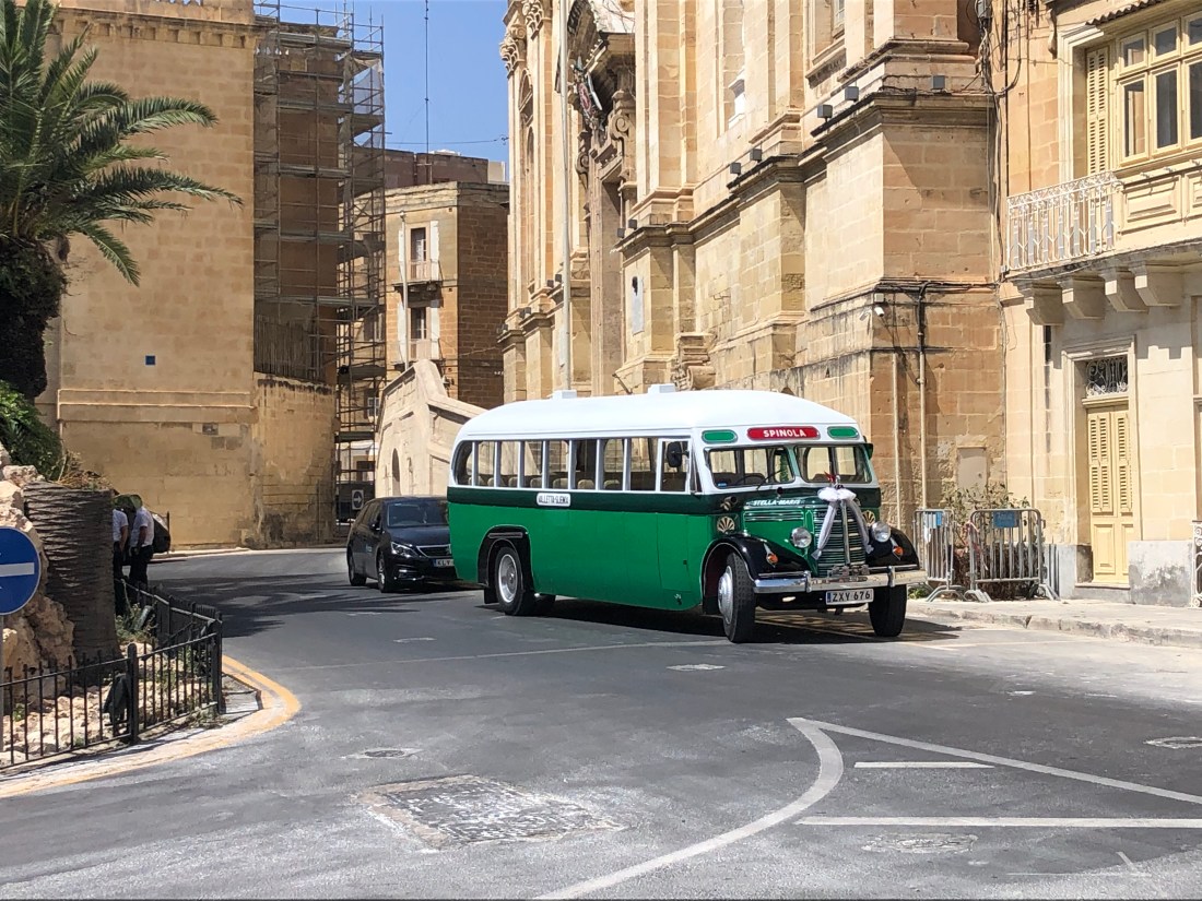 At the Birgu church, a wedding Maltese bus! Which then passed the cafe full of the bridal party and, I assume close family! Maybe heading for a quick swim before the evening of partying? Late afternoon felt like 40 (celcius) in the shade!