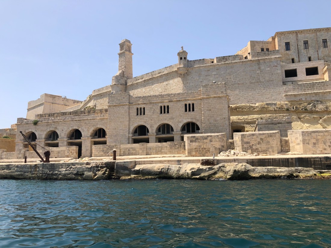 The lookout tower on the point of Valletta and on into the port harbour, at the back side of Senglea, which houses none other than….