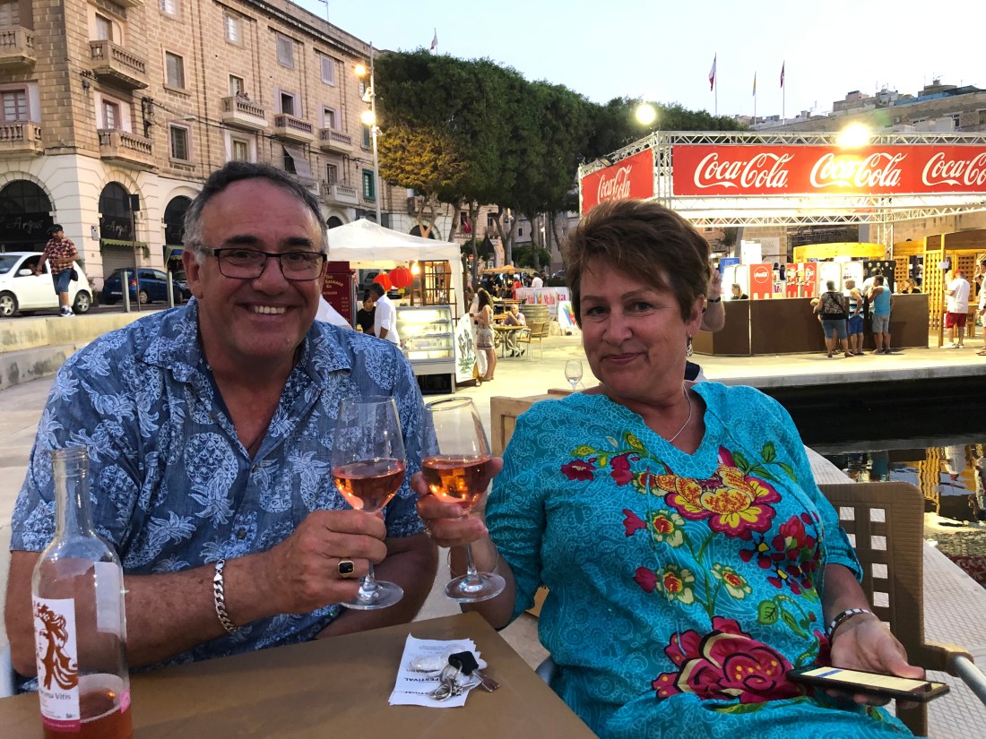 Wine festival in full swing again tonight and everyone out and about in a balmy Mediterranean evening, however, after eating, Russ and Sue headed home to Birgu for our last night, Lizet and Dave….who knows; they may be once again enjoying the craziness of a Maltese Saturday night!