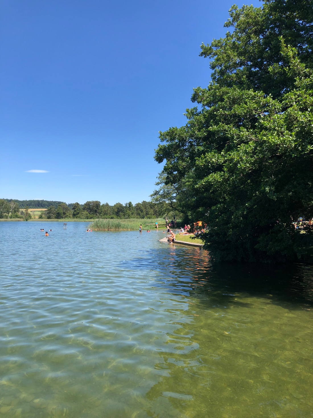 To our patch in the shade at the lakes edge.