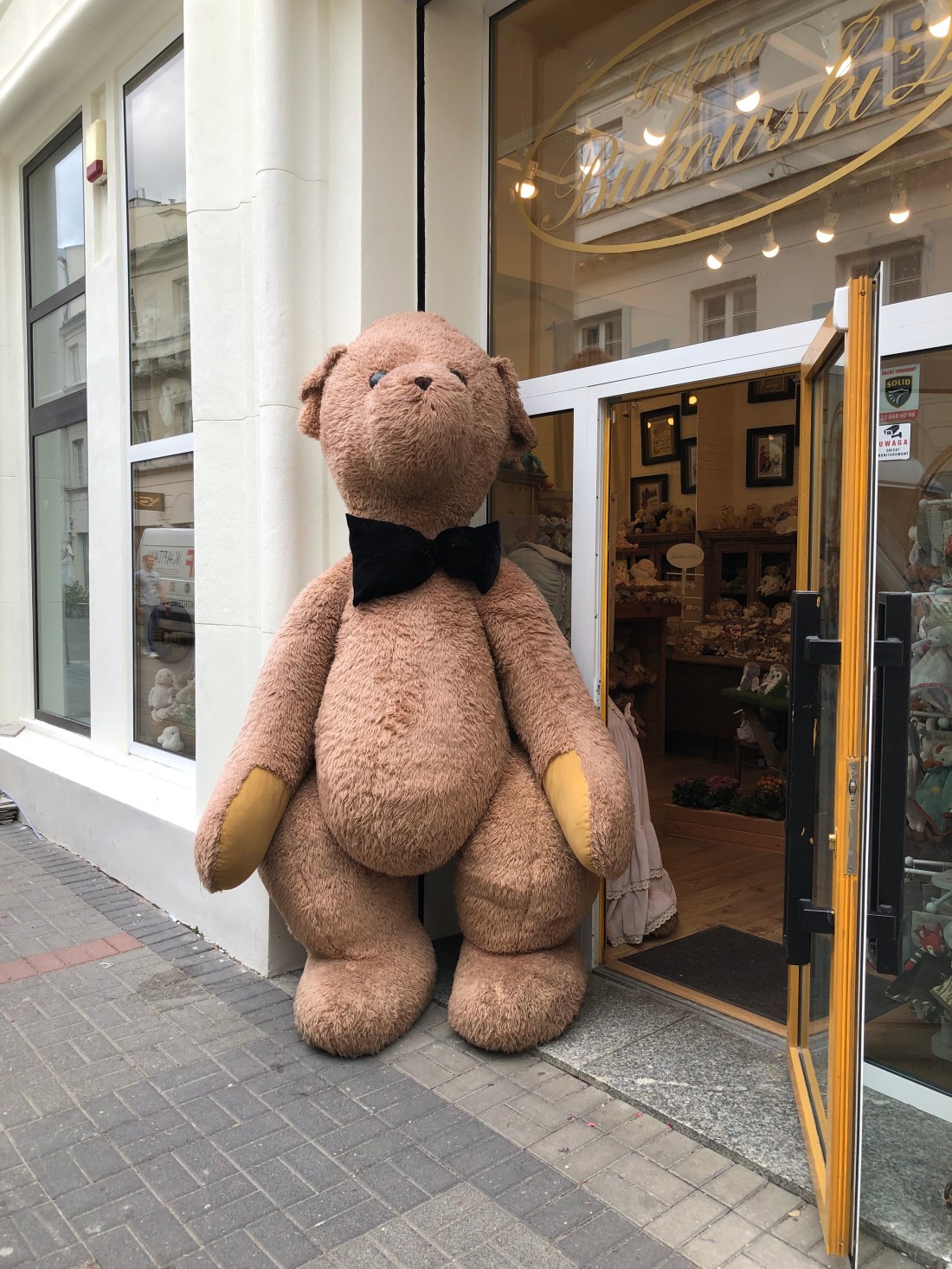 Spotted this big guy on the street…had to see what he was up to and there were hundreds more of these guys inside (although not all so large) A Teddy Bears Treasure Trove.