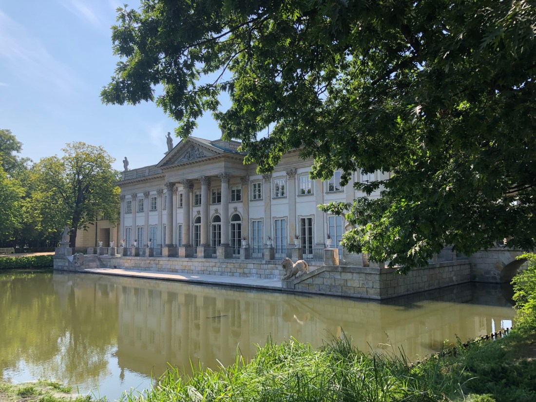 The Lazienki Palace is on 78 hectares of gardens and in the middle of a lake…first glimpse