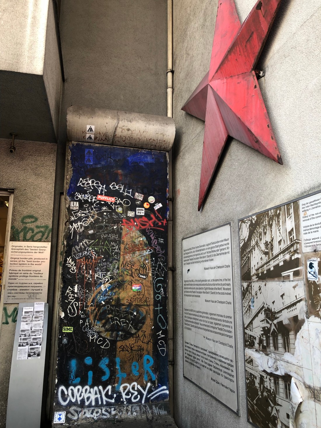 A small piece of the wall still standing outside a souvenir shop where we bought a T’shirt for Russ!