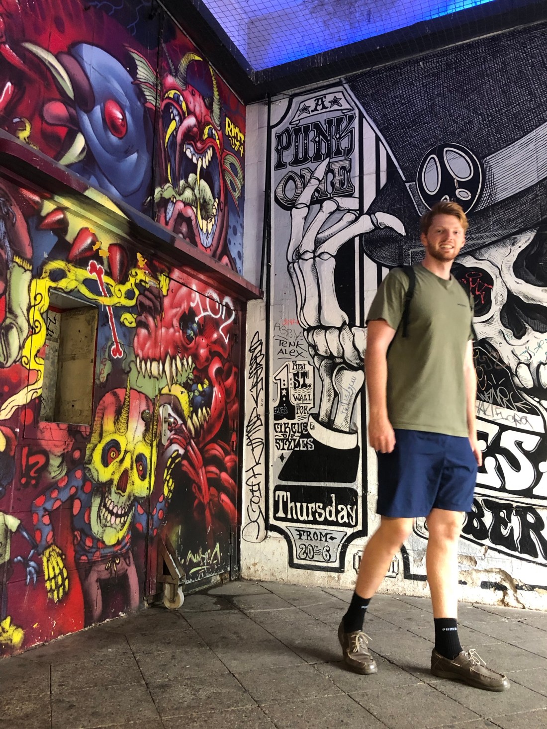 Exiting the underground in our boho, hip, tagged German multicultural station for the last time.