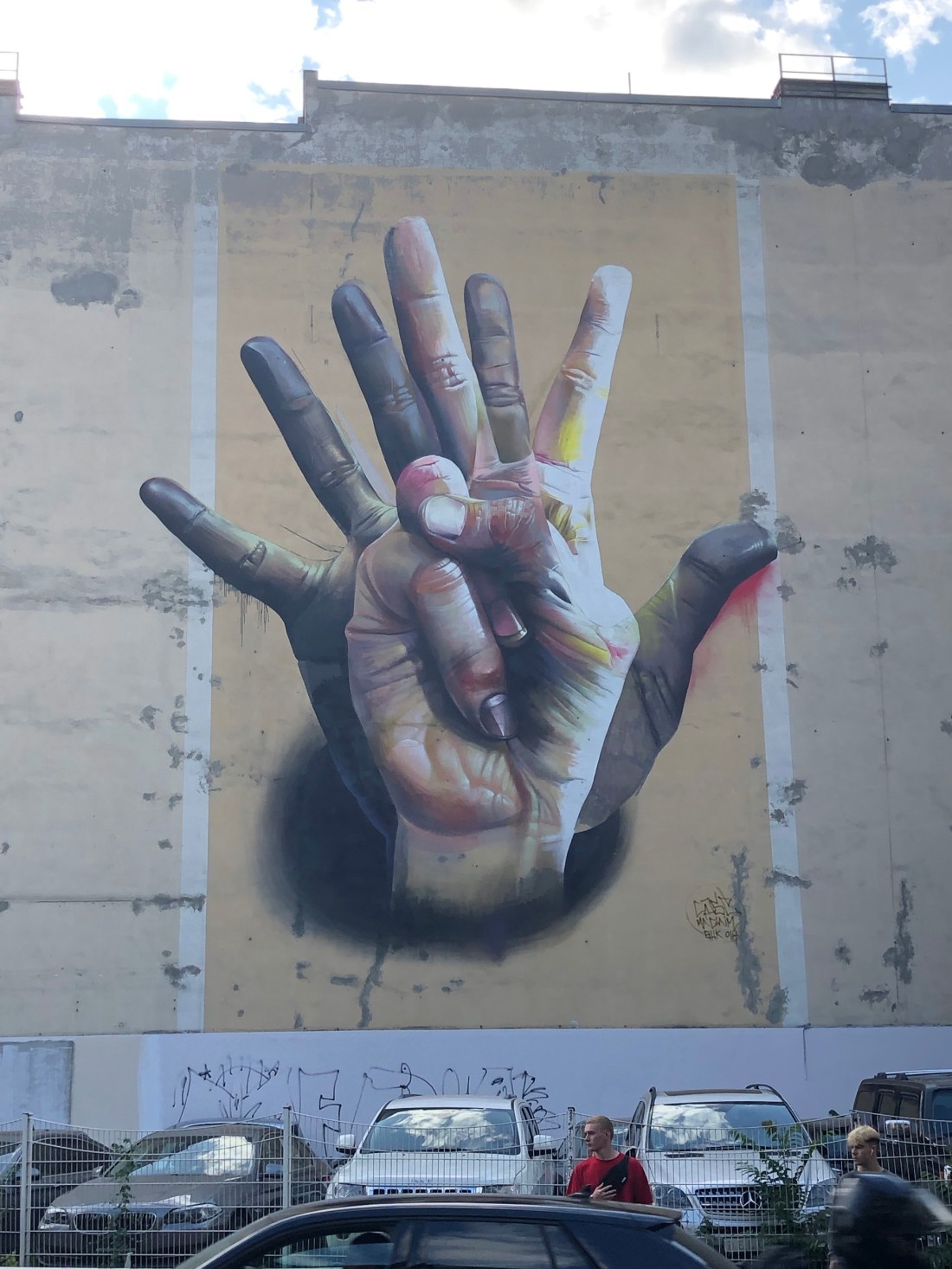 And in our hood, apart from all the graffiti, that we are now oblivious to, this artwork on the building across the road….denoting the Berlin multicultural society that we are living in!