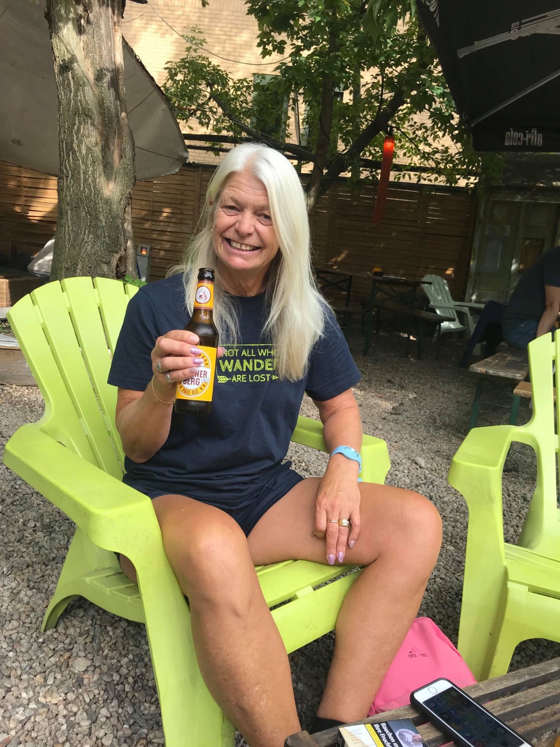 And Sue looking very relaxed with a dreadful tasting beer in hand! Please excuse the very unladylike pose 😦