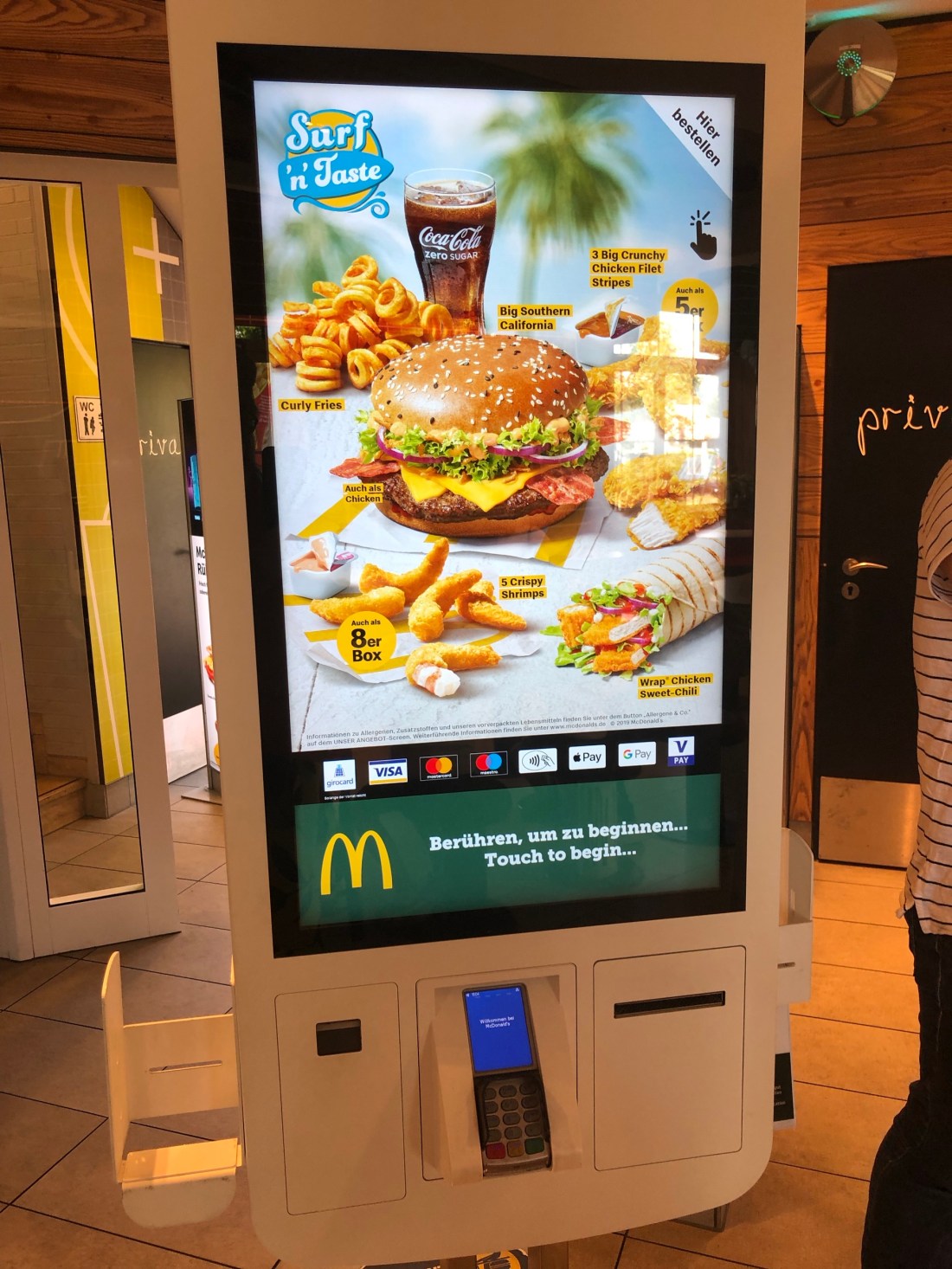 This had an English option, so was easier than talking to a human! Took me a while to navigate, but found the desired choices and a mcCoffee cappuccino for Russ and I.