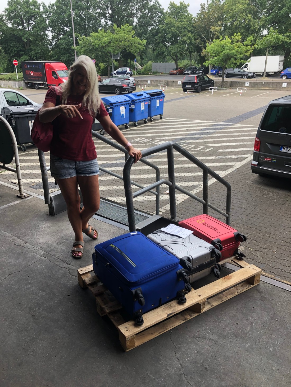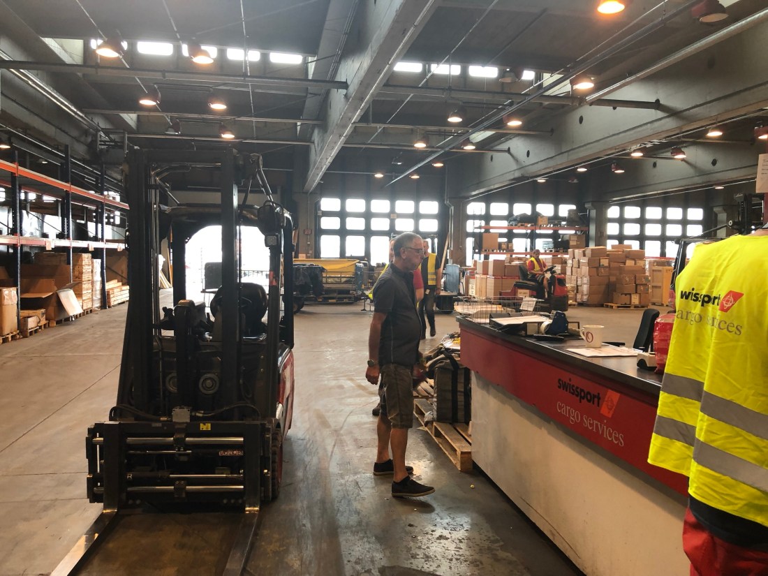 And amongst all the huge freight, there they were our three bags sitting on their own pallet, and fork lifted out to the loading bay.
