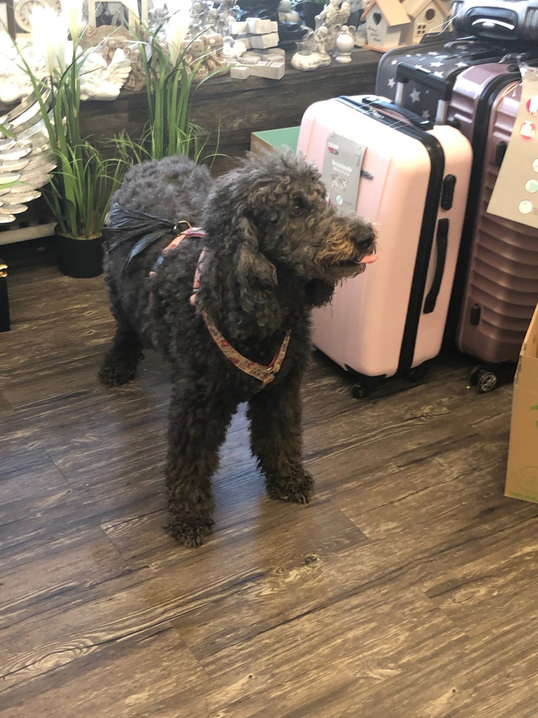 Finally a canine! Waiting patiently in the front of the $2 shop for its owner.