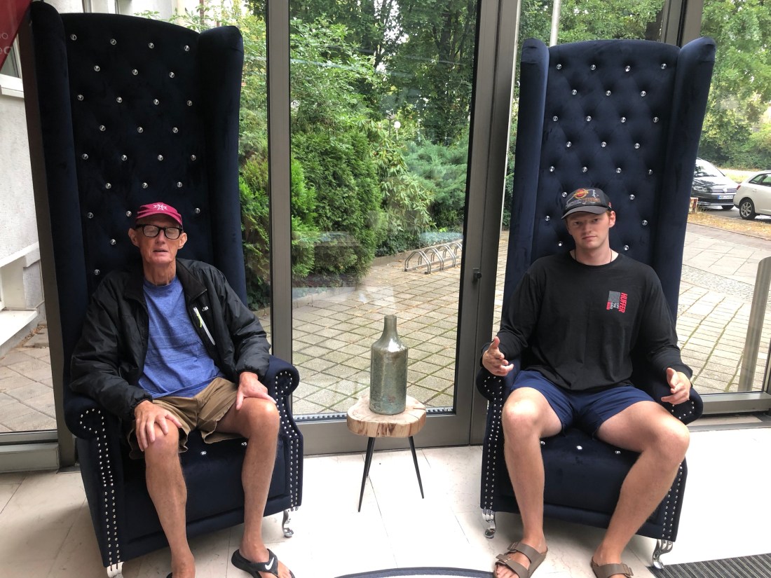 George and Russ relaxing on the foyer chairs before George left us this morning, feeling not flash with what appears to be a tummy bug! Pains yesterday and progressing overnight…