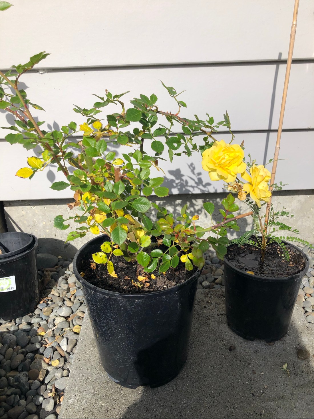 Russ’s yellow rose is flowering in the spring sunshine while the Bonnici-Carter’s are floundering a bit. A little hint he is telling us to hang in there.