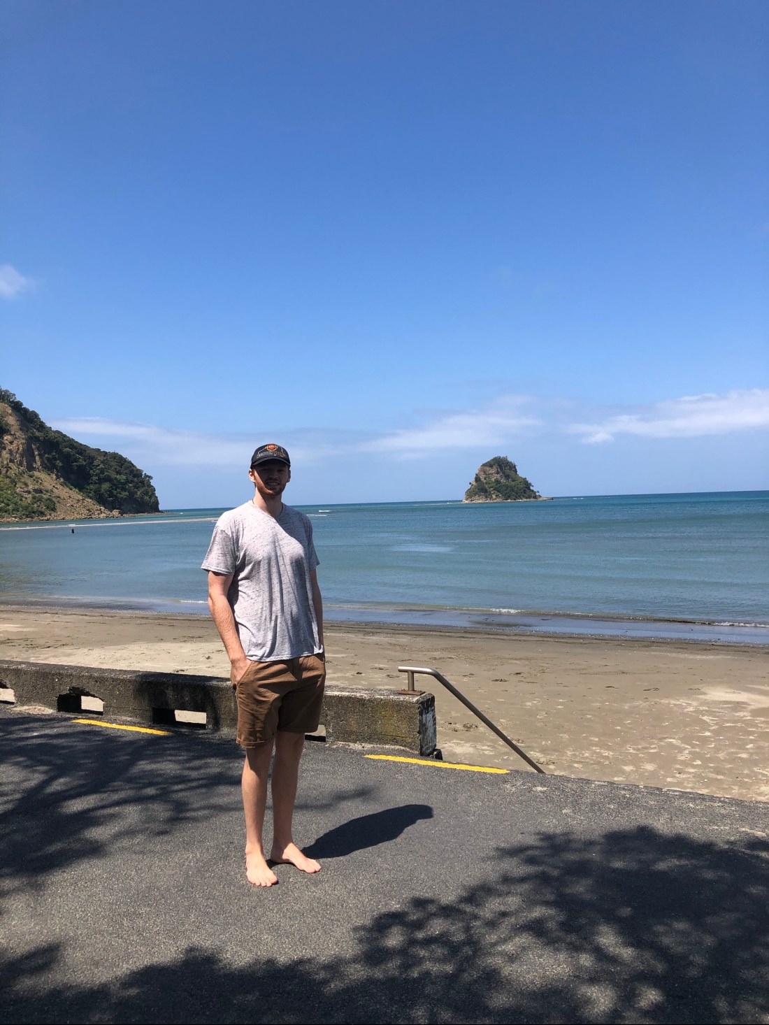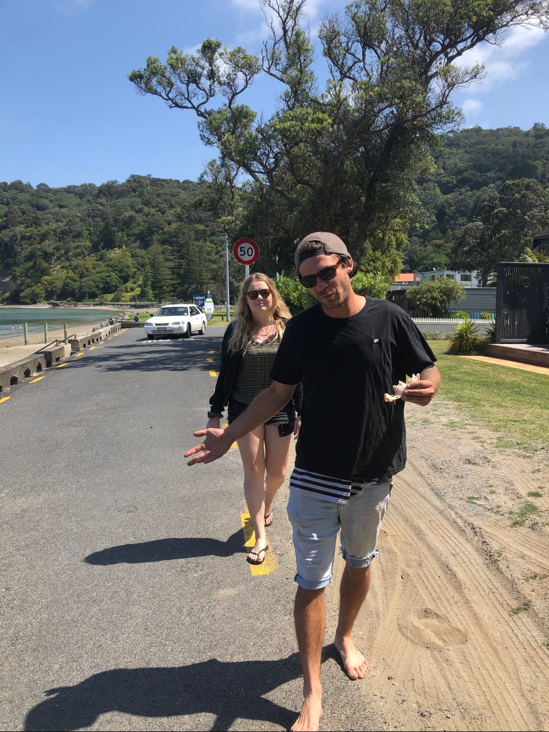 Dan and Lex taking a moment to relax with a stroll along the waterfront, barefoot kiwis!