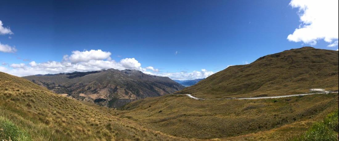 A photo stop at the highest point, lake wakatipu in the distance, way down there, our destination.