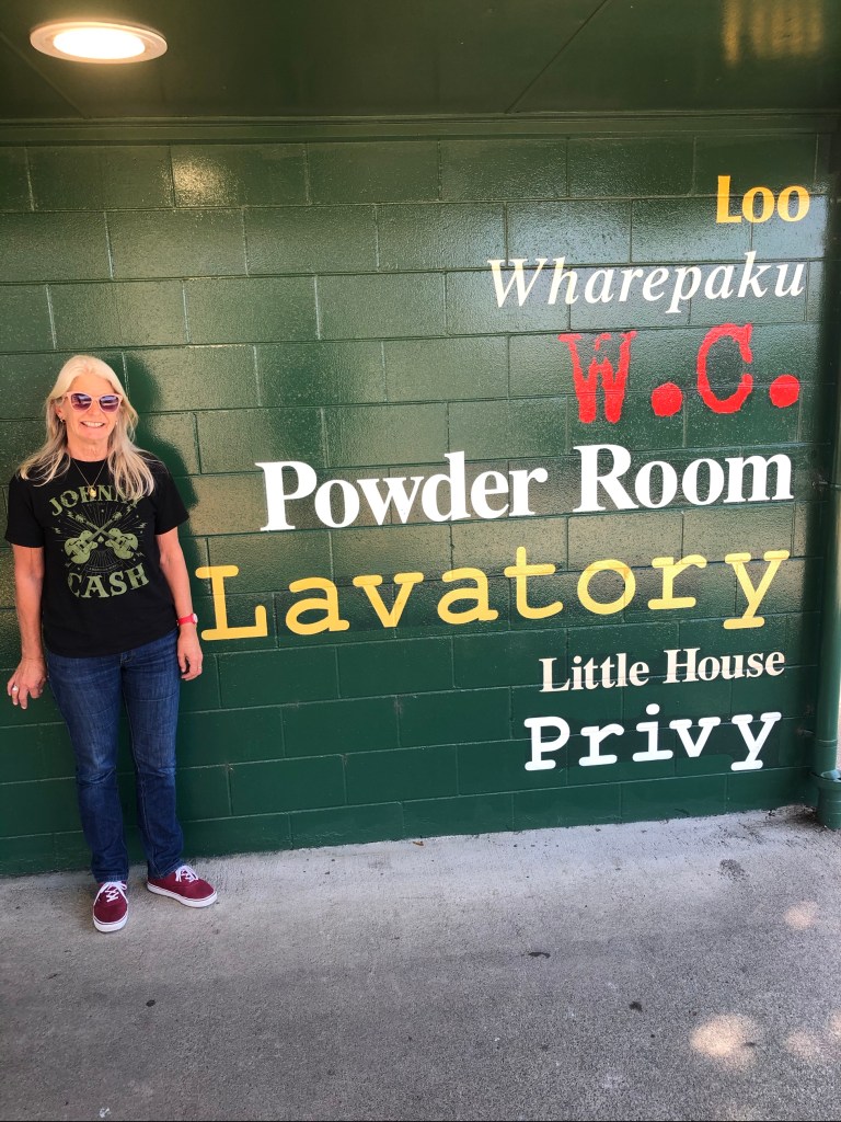 Sues turn to use the powder room at Otorohanga, with the mandatory 5 minute hand wash.