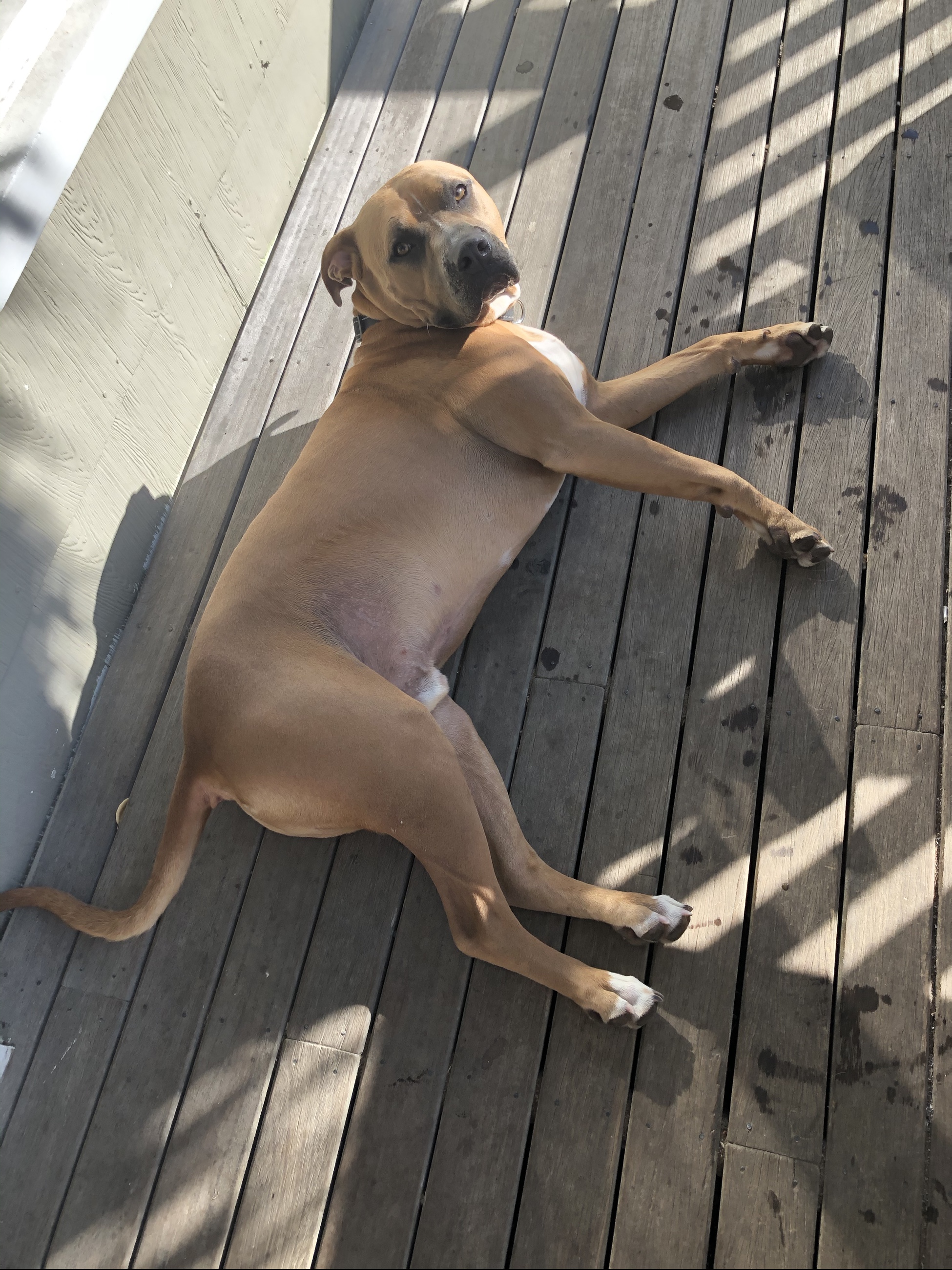Well good intentions…I walk past Dans Gate (who is part of my bubble as he lives alone) and he was out beavering away repairing my park benches (at 8.00am) – so Floyd (the canine grandson) was looking longingly through the gate….Floyd being a 50 kg Bull Mastiff x boxer x lab or something. I offered to take him on my solo walk, as dogs are now not allowed off leash at all (I figured he couldn’t run off after a cow or something)…..we started with the expected Tug of war as he was excited to be out, but this continued to a two hour training lesson, Floyd pulling, me pulling back, sitting, walking in circles, short leash…. long leash, change hands…two hands…..you name it, it was a battle of the wits. Don’t get me wrong there were some “good boy!” times and slow gentle walking in between the 2 hour full body workout for both of us!