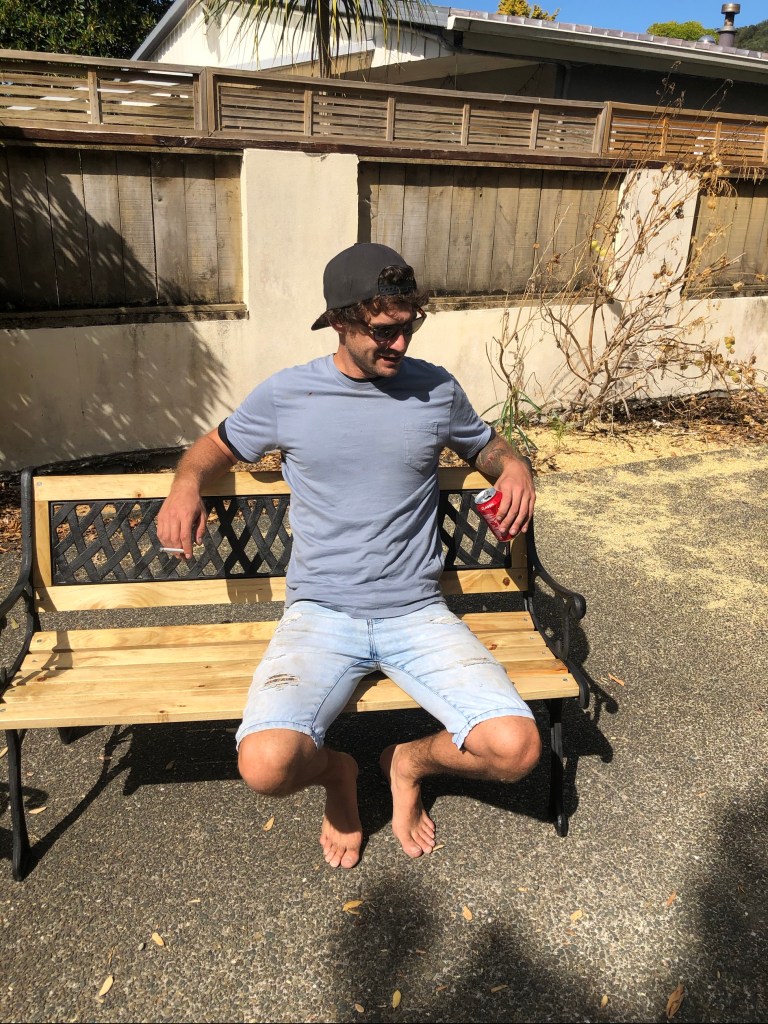Dan having a rest on the finished product! And very happy with his work…now in this lockdown we need to find some more nuts and bolts to work on the 2nd one…only essential services are being supplied with any building supplies.
