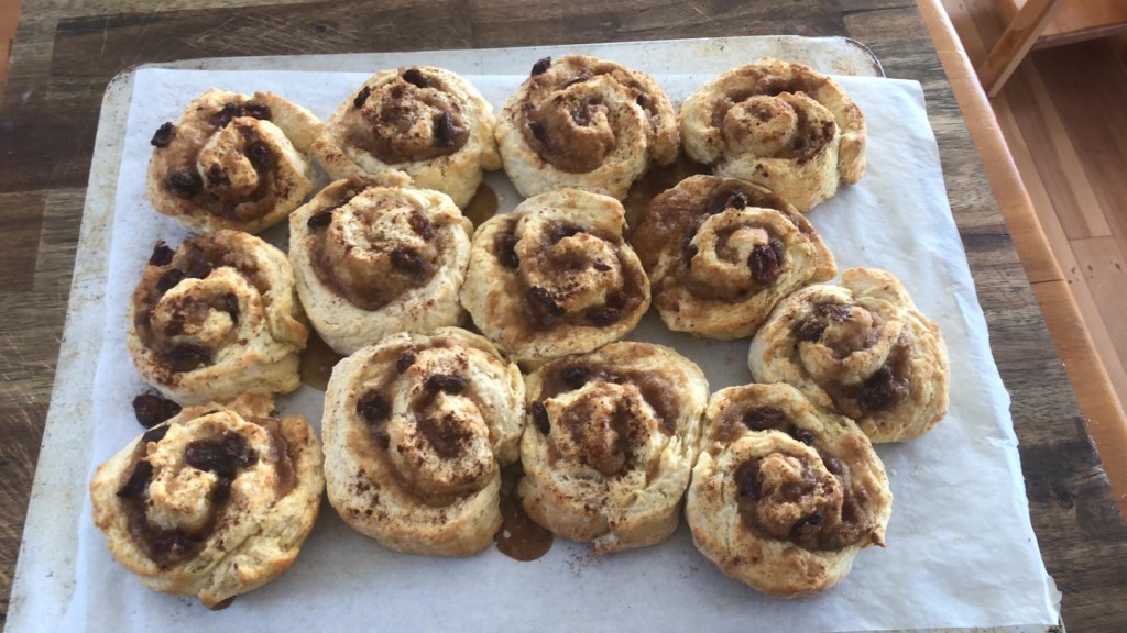 No Hot cross buns this year…so threw together some cinnamon scrolls – nearly forgot the cinnamon (but last minute sprinkle before cooking did the trick)