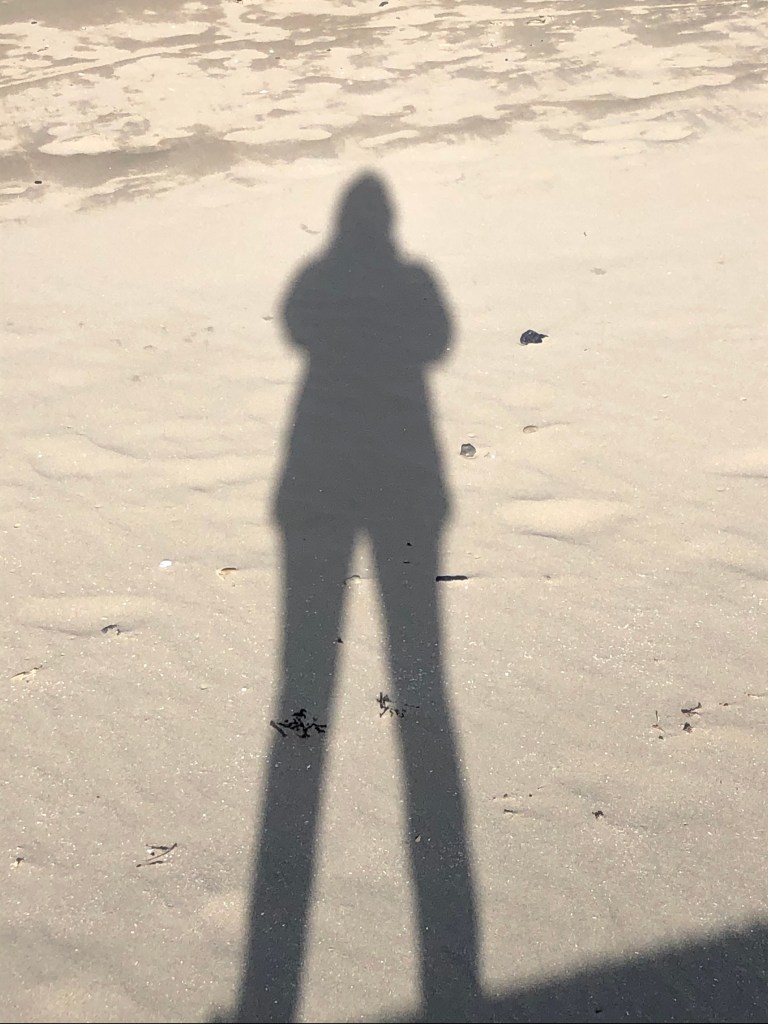I took my shadow….new best friend….for a stroll between showers along a deserted beach