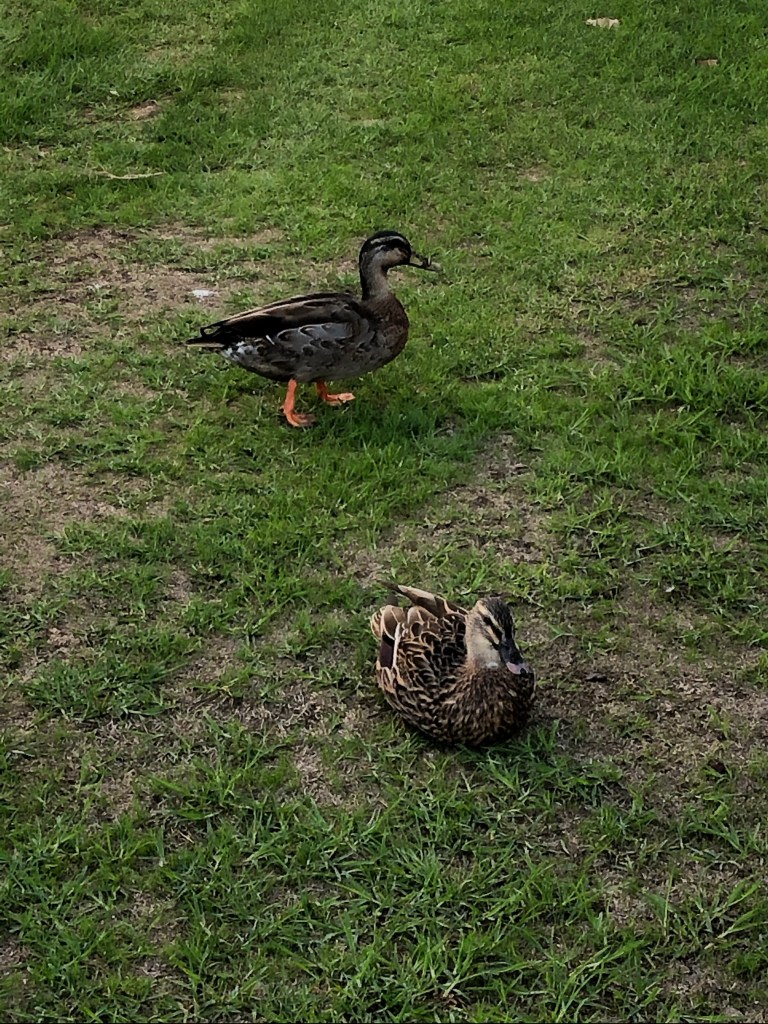 Larry our limping duck, still hanging out under the feijoa tree (which is now rather lean on the ground for fruit), has finally found a friend. This one other guy has been hanging with Larry for the last couple of days, while the other 100 in his family hang out down the road!