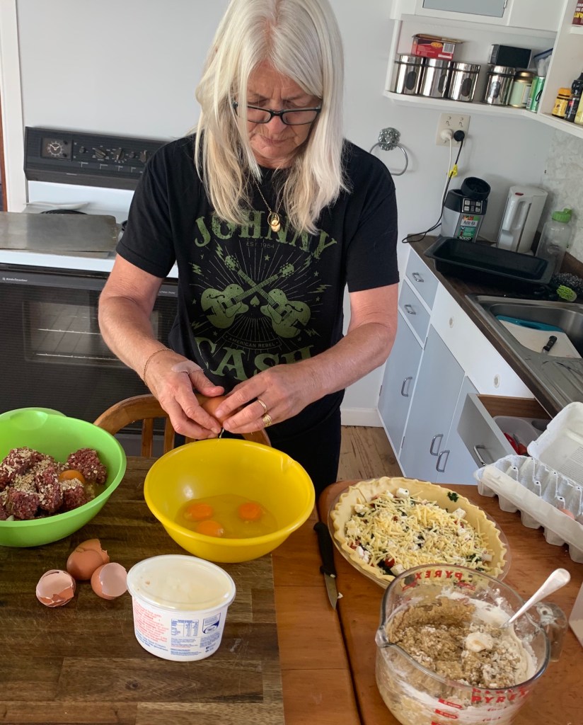 So it has come to this…images of cooking…yesterday afternoon welcomed the Anzac biccies, quiche and meatball prep in one hit. Time out from my work keyboard catch up, rather an inside day on such a blues sky, warm, winter is never coming, day!