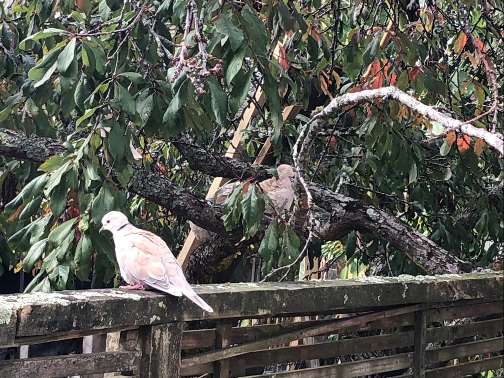 In my new back garden with my old friends, who consequently were very vocal yesterday…cooing (that’s what doves do) away at George and I while we were working. They are kinda fat at the moment, knowing nothing about doves, breeding time? Or winter coat?