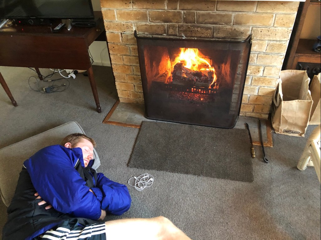 So we burnt the last three pieces of wood and kindling and even the box it came in ( wringing out every cents worth of expensive firewood). George made the most of the dwindling flames. Having already decided that $10 a day in power is more efficient than $50 a day in firewood!