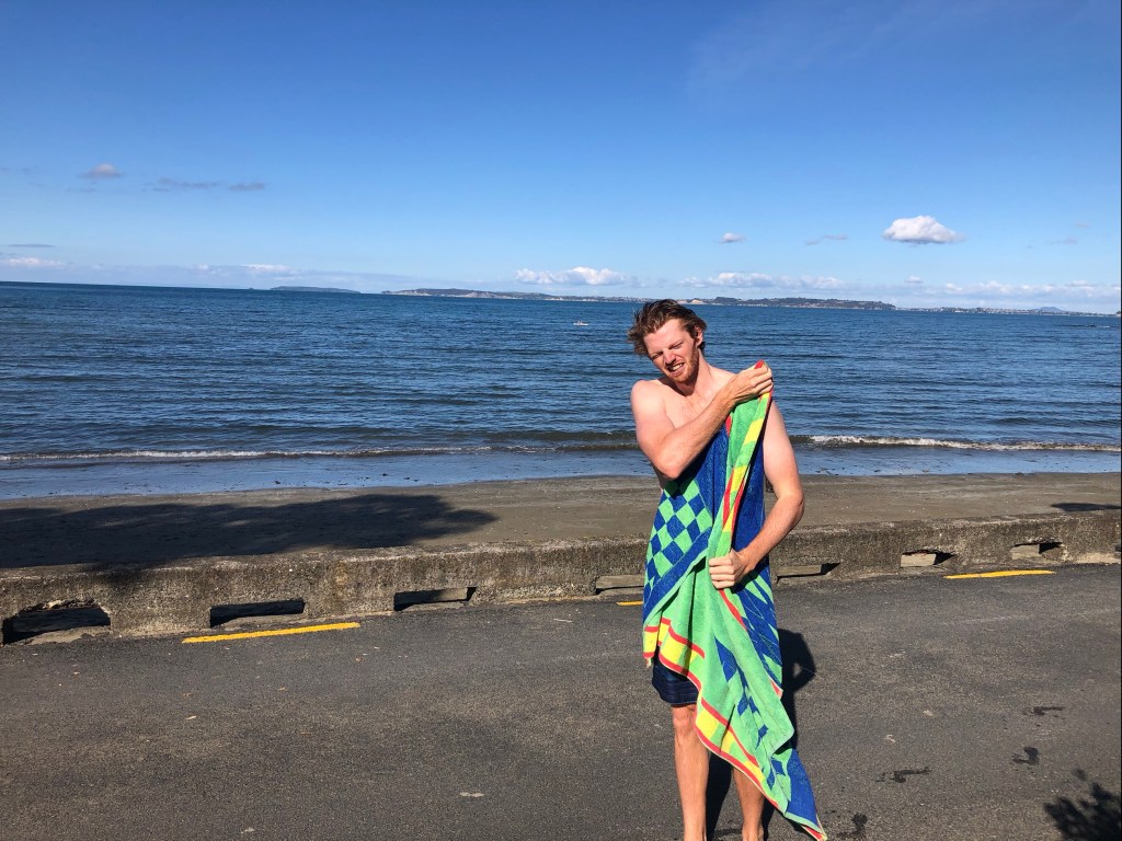 Next stop some drop offs to the boys at Waiwera and a mid winter summer day swim….