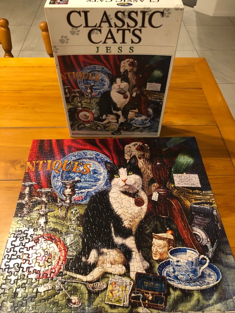 Puzzle number two complete by Wednesday evening. My addictive nature has seen me sitting at the kitchen table well into the evening – while the Sky Australian news blasts away in the background (dads entertainment of choice).