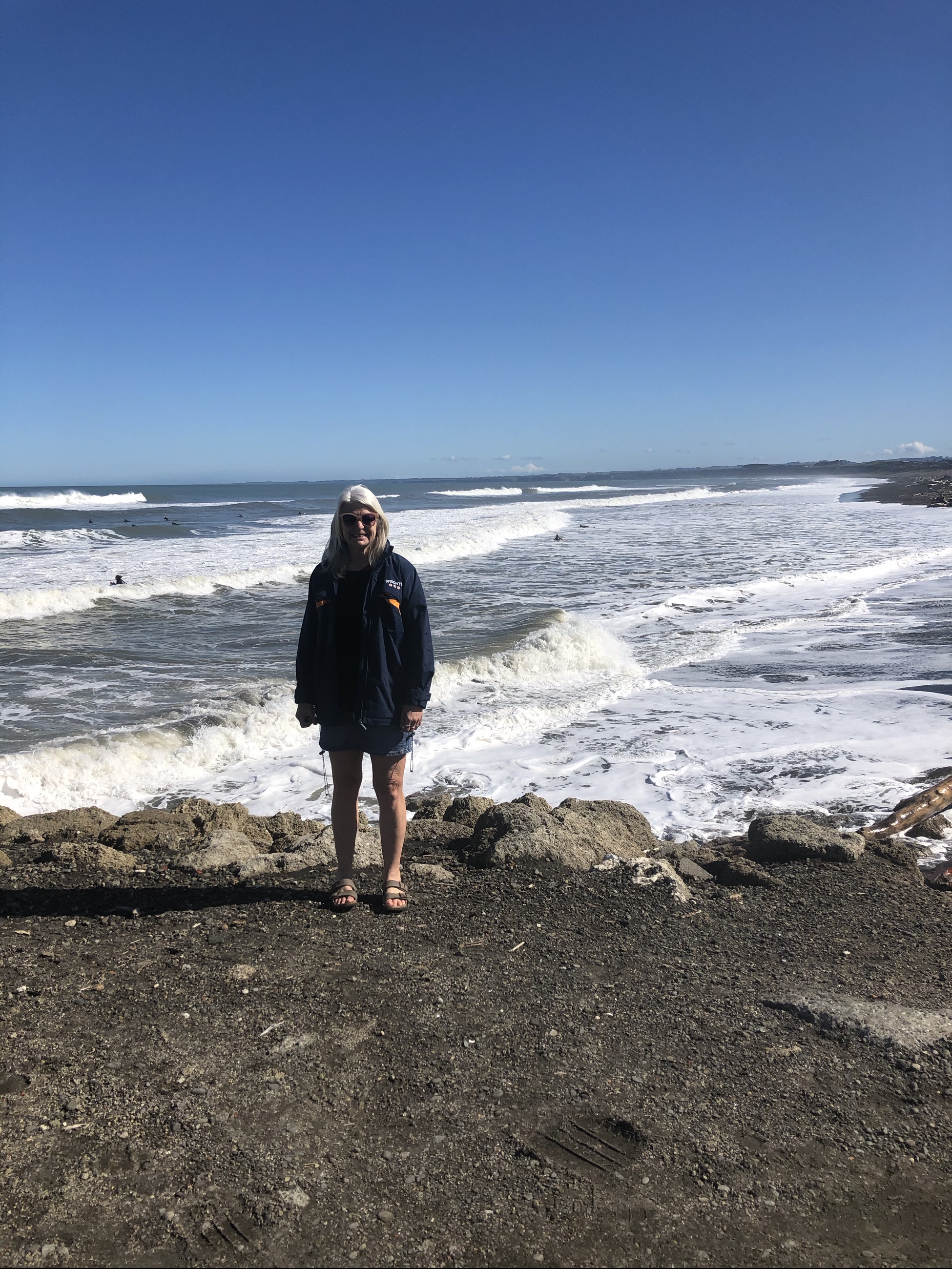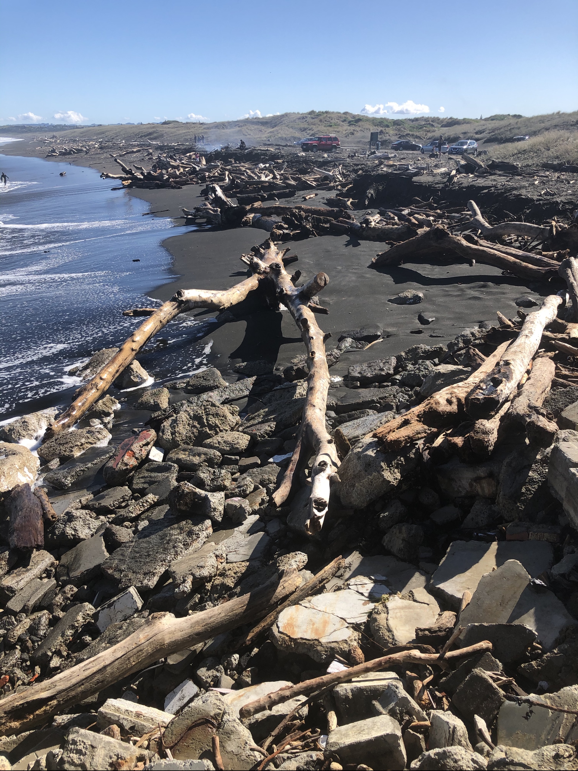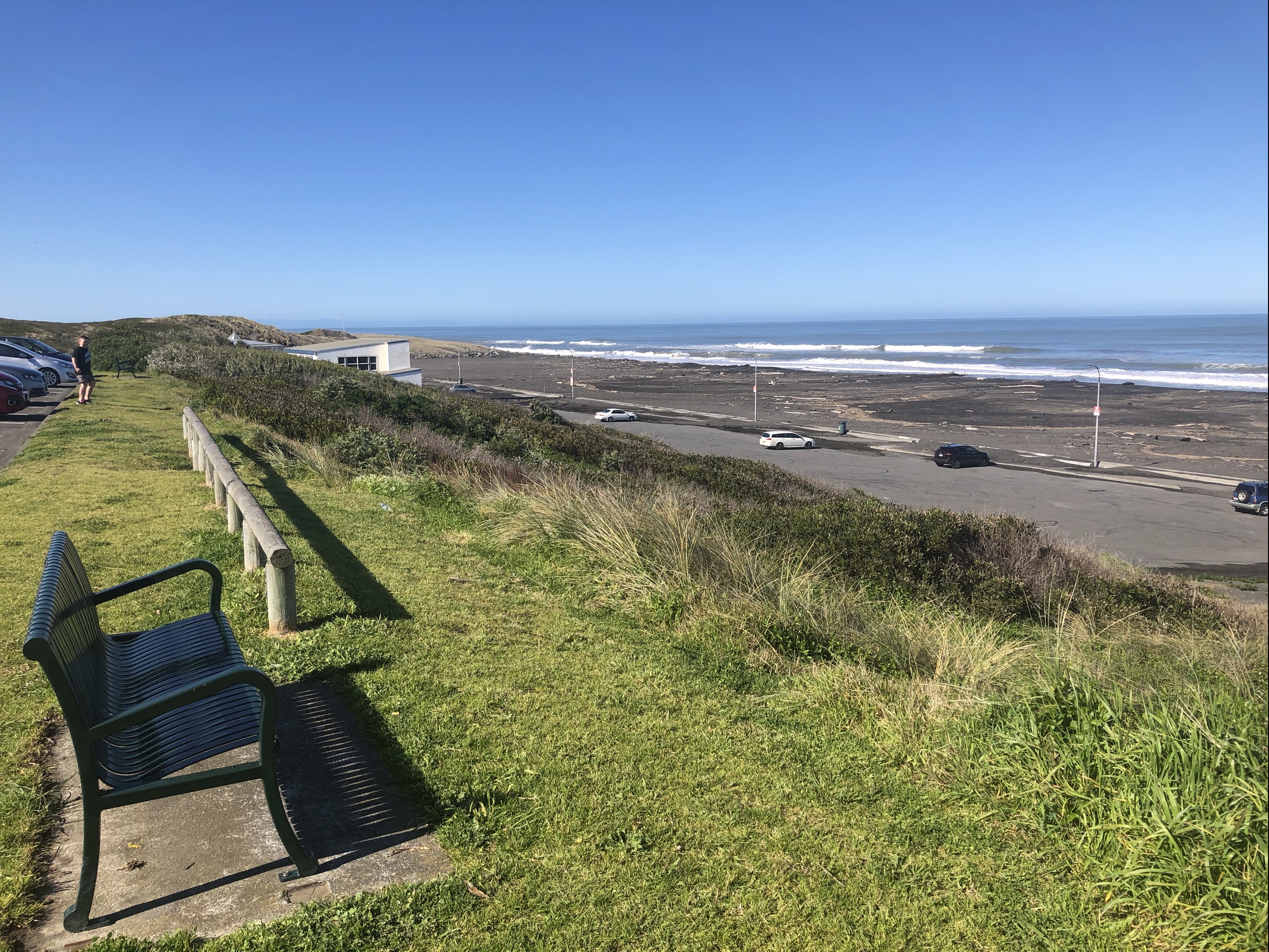 While Wanganui is famous for its river, riverboats and railway history, it is actually on the Wild West coast! A short drive took Thelma and Louise to the beach; black sand, surf, driftwood and mountains!