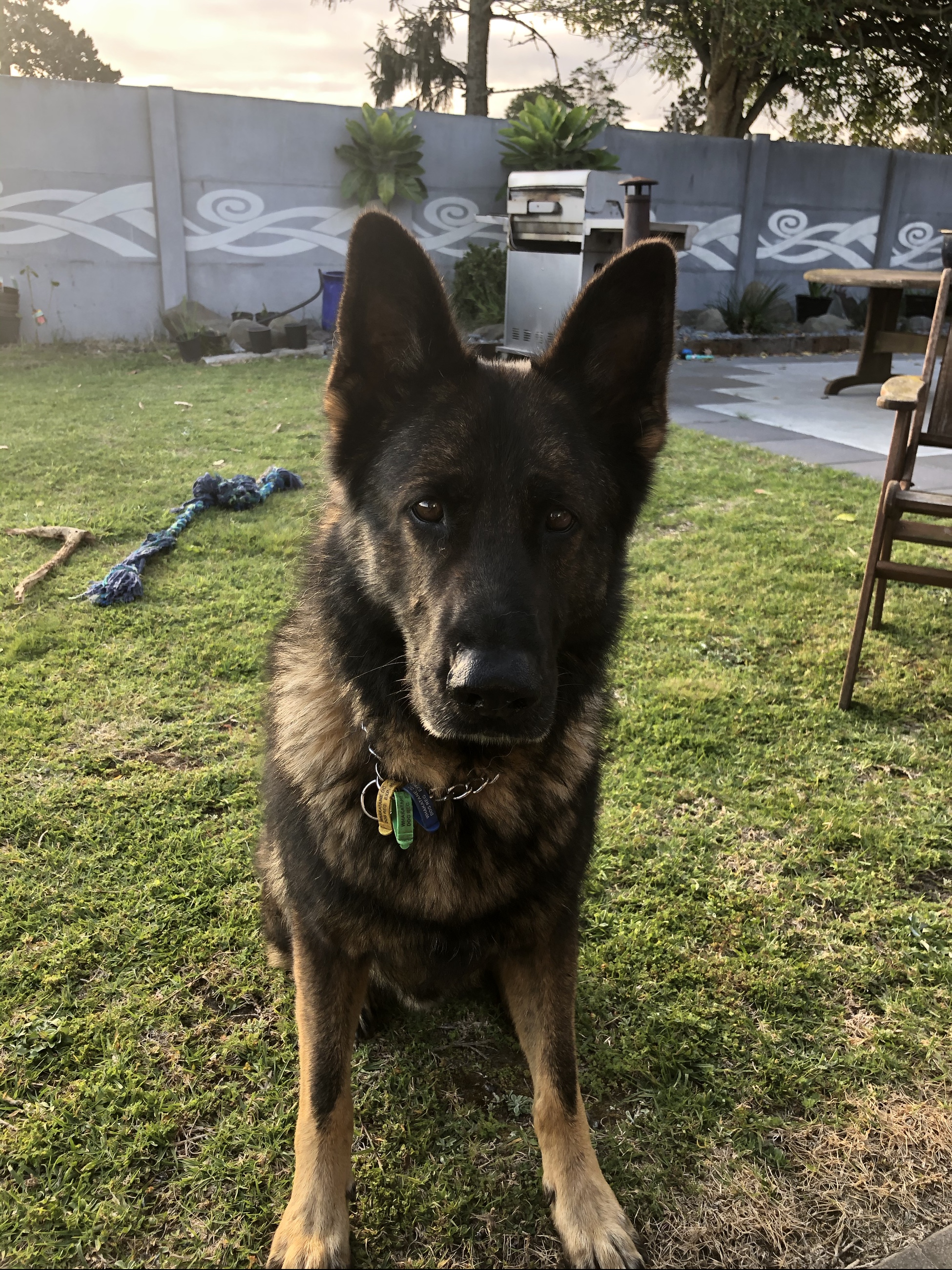The canine roomie, but the best thing here is we can sit on a toilet seat, after three days of hovering and elbow door opening!