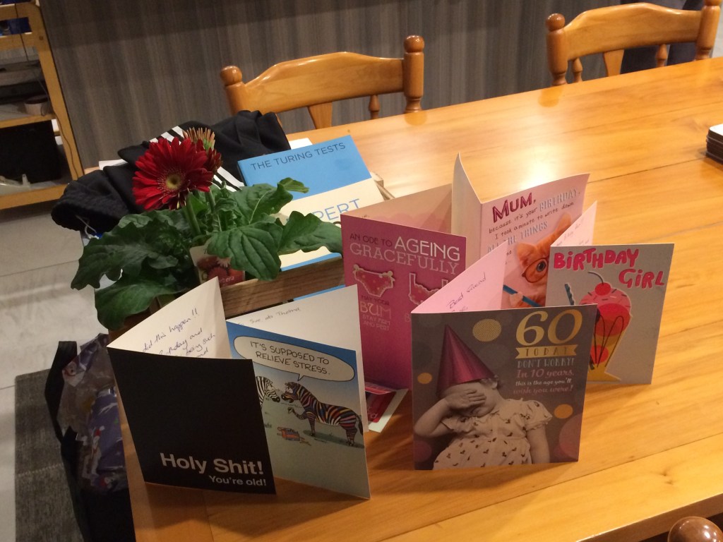We celebrated my 60th on a Thursday evening, with a baked cheesecake, and Australian sky news!