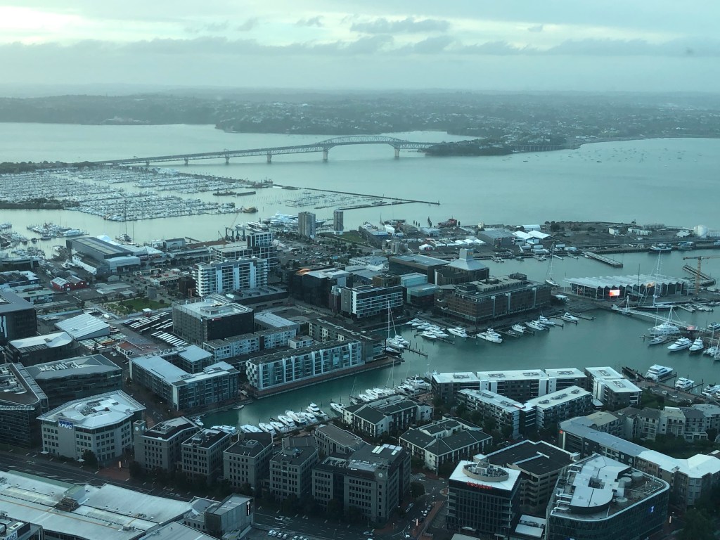 The weather was slightly overcast as we revolved around the Birdseye view of Auckland city, looking at our harbour bridge in the distance past the America cup village and the Auckland Marina.