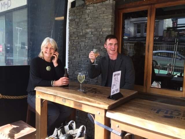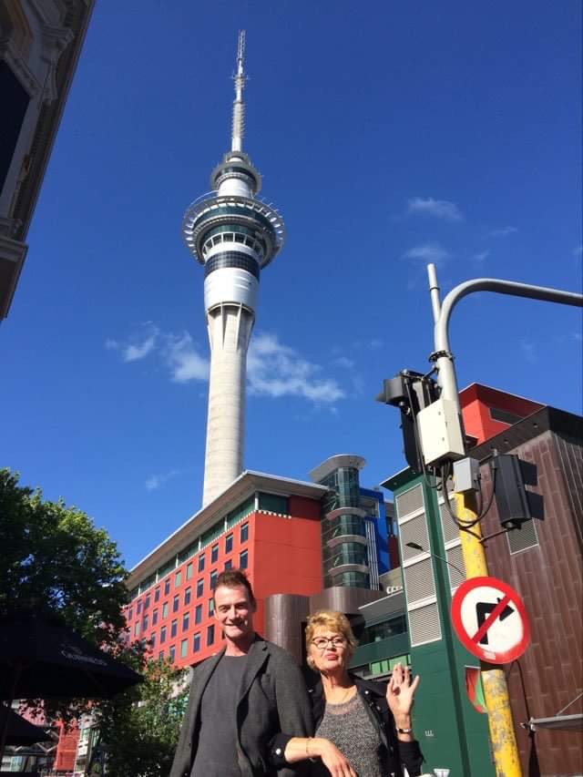 Having collected Louises boss and friend we set off to explore the neighbourhood…in search of a little pre dinner refreshment, pausing for a picture with the city’s landmark….The Auckland Sky tower…and the party destination.