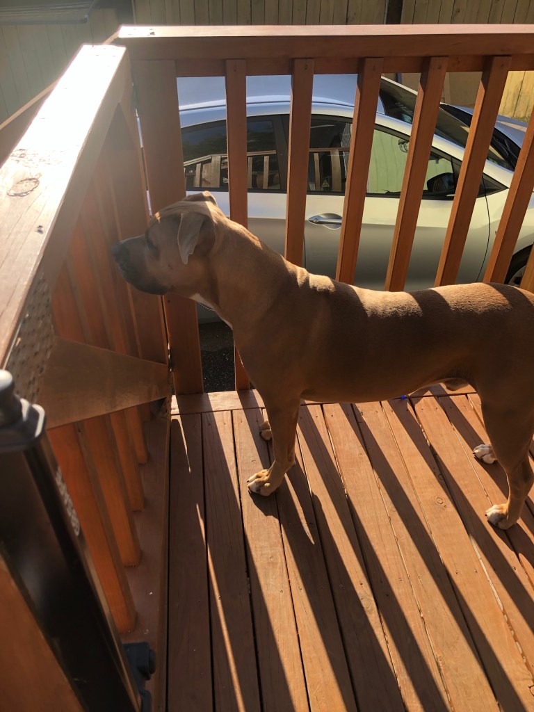 Floyd has been in Jail half the week (on my deck) as tradies come and go….one eye on Daniel at all times.