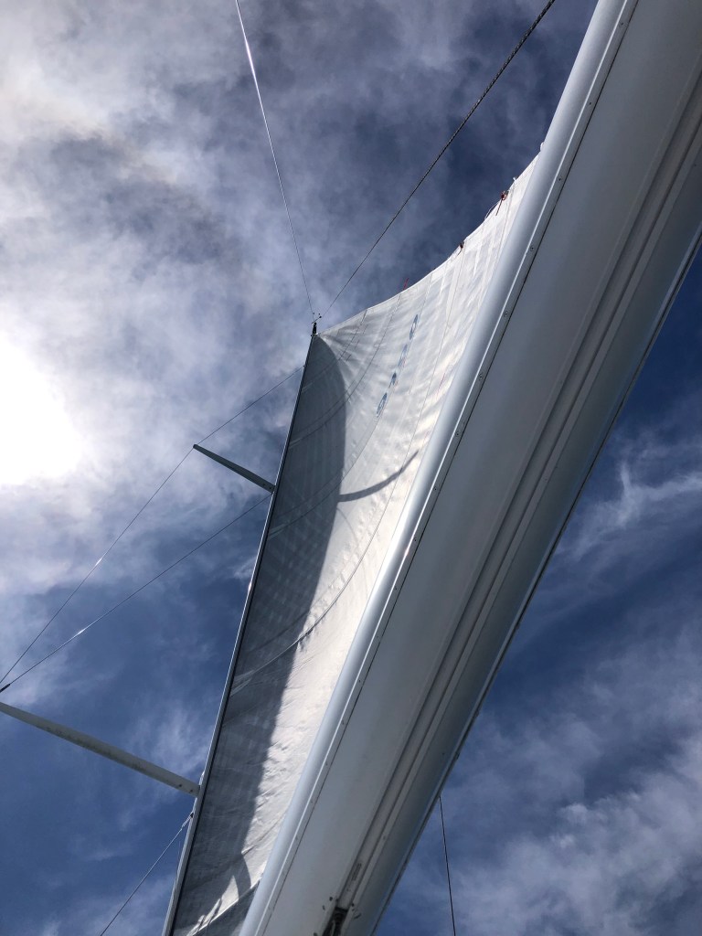 Sails up and sunglasses overboard! Yes early into the adventure my $2 sunglasses fell off my face and floated away in the wake! Not so easy to flick around a large yacht in full sail to scoop them up with the fishing net…