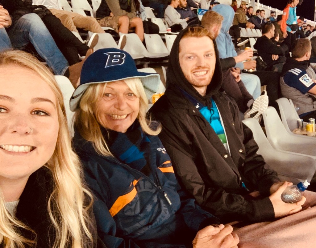 As our team is out of the playoff running, a slightly sparser crowd came out to watch our boys hammer the somewhat 2nd string Chiefs 38- 19. Chiefs resting a few of their top boys as they have scraped into the top two for Kiwi playoffs! Still even with their best on field they would have found it hard to beat the Blues last night on their home turf! A evening with all the usual “Eden Park” hype, Doug Howlett (a kiwi rugby legend) arriving over our heads (like if George stood up he could have shook hands) in a black helicopter landing on the park before the game! The statutory box of mini donuts, hot chips, bucket hats, our favourite seats and happy faces!