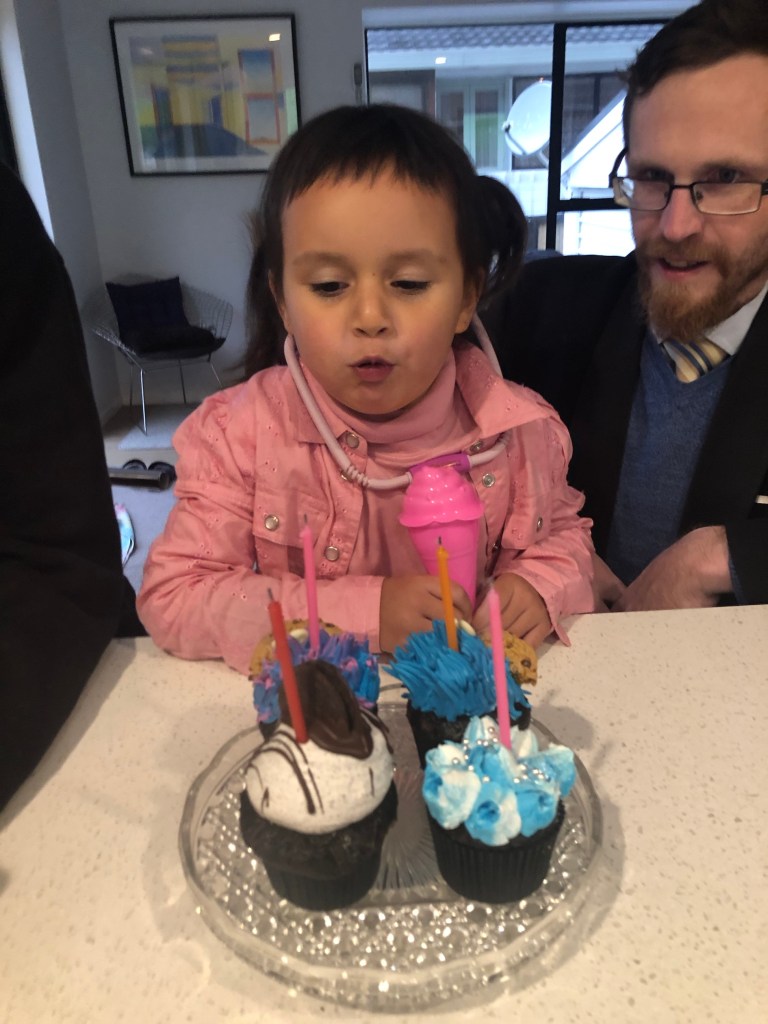 Auntie (great) Sue celebrating Esmes fourth birthday in style with Fraser (dad) and Trey (brother).