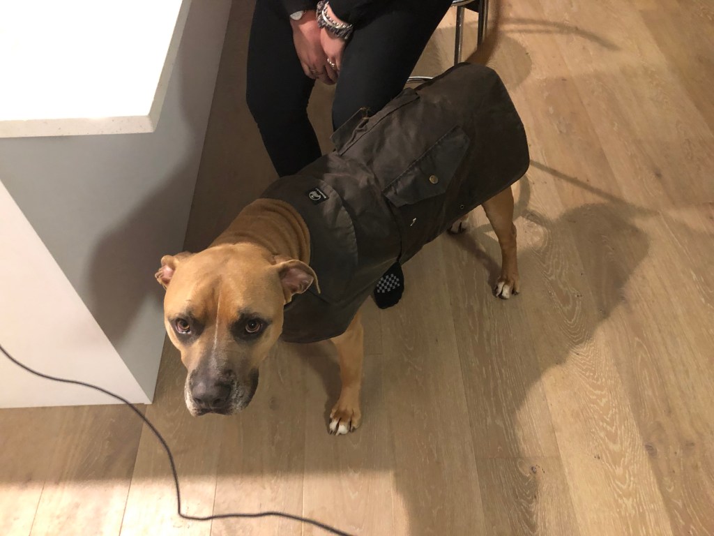 Floyd has donned his wet weather gear to help my builder create garden space and ploughed around in the mud!