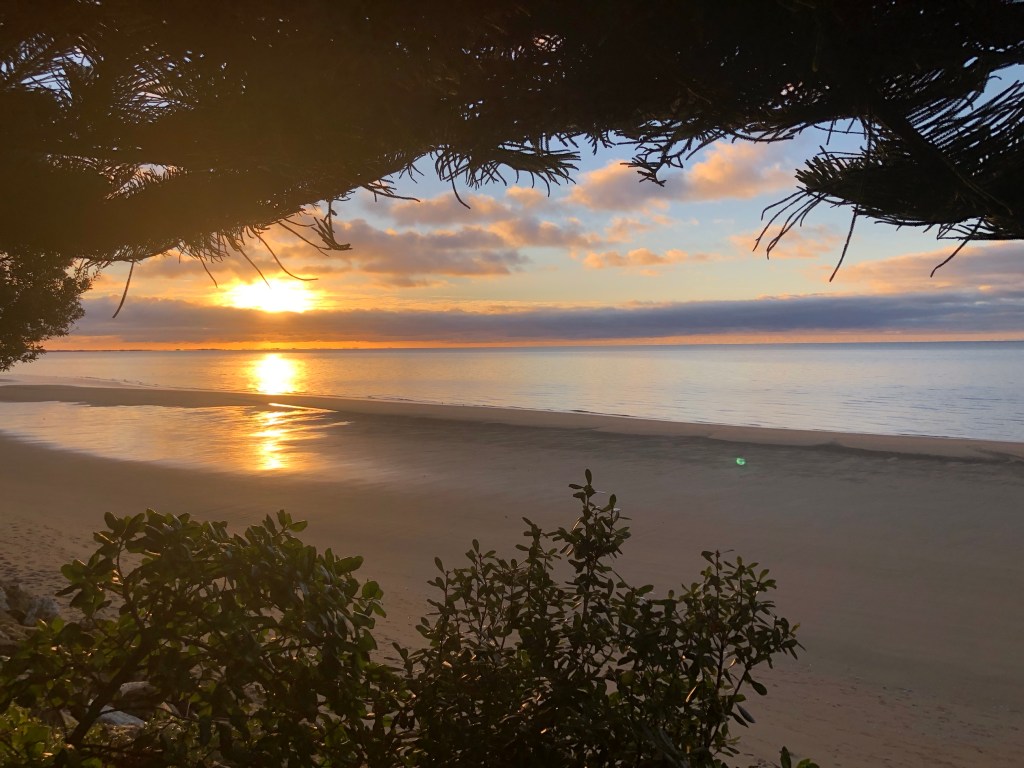 After a dinner of nuts and peanut butter sandwiches we woke to another golden bay day!