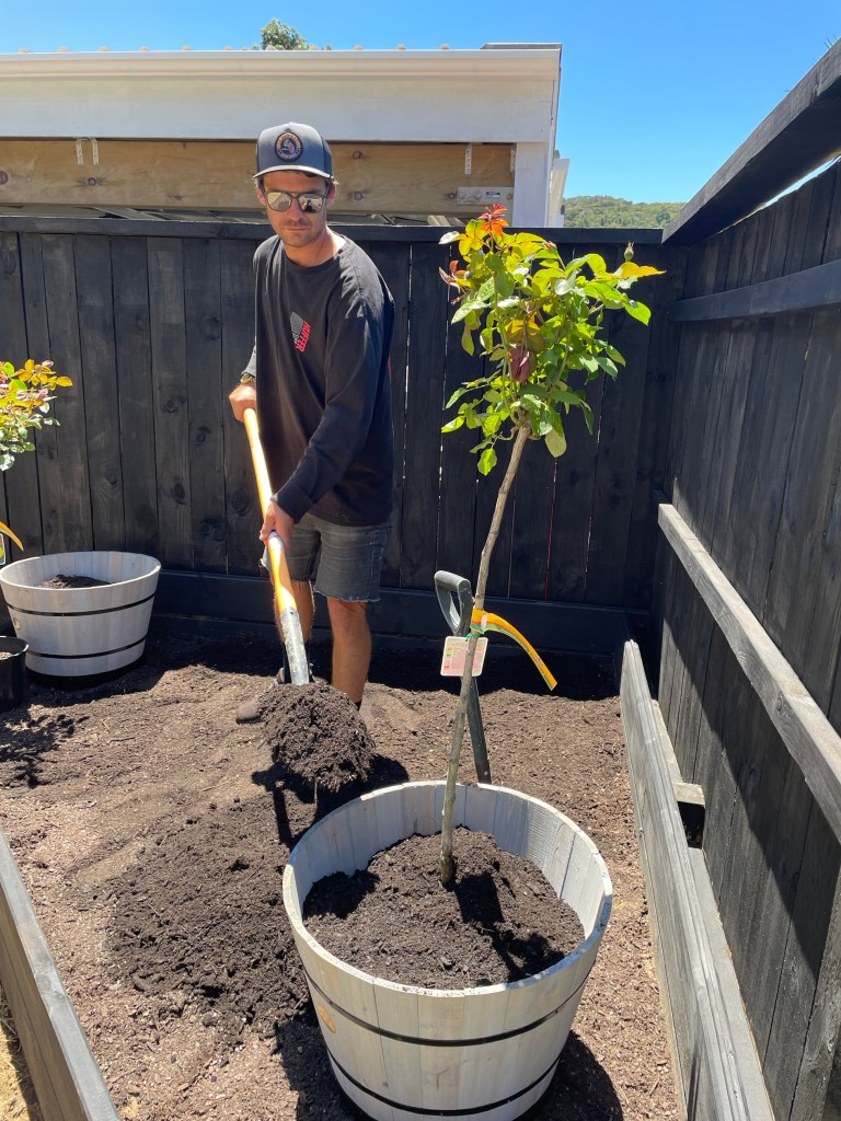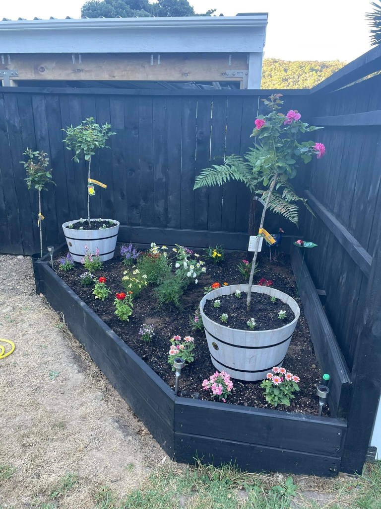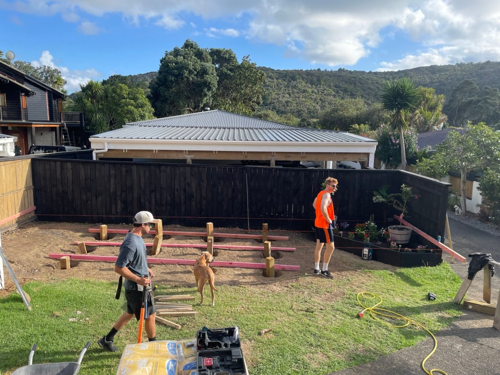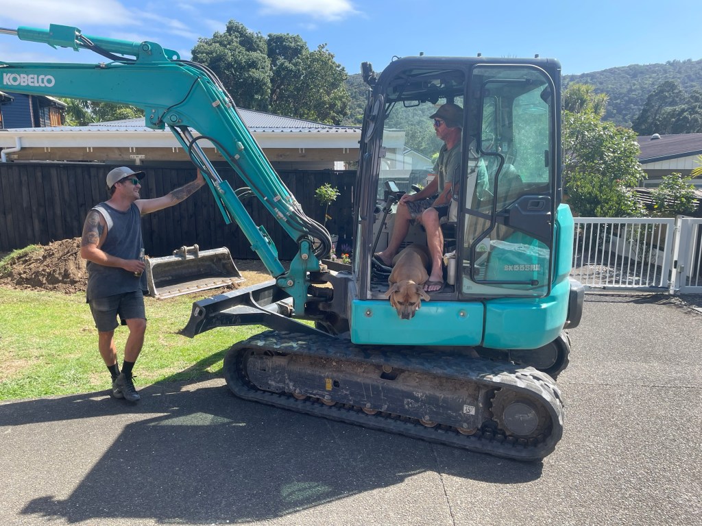 Mum and Russell Rose overseeing the project….meanwhile the Katikati kids arrived on Saturday for the long weekend at the cottage. The old peugeot(bike) has been stretching its legs up and down the road for playtime with my grand baby….