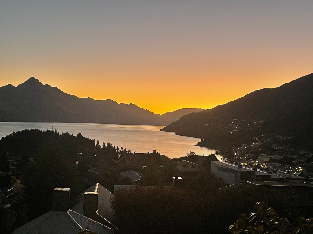 Room with a view from my Queenstown apartment, speights in hand as the sun sets over lake Wakatipu – preparing for a busy Thursday visiting clients! My chauffeur(and friend Pam) from Te Anau joining me for the duration.