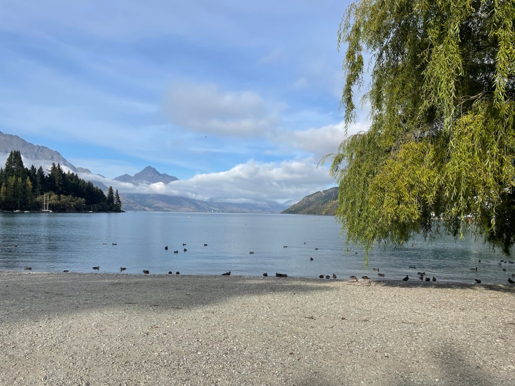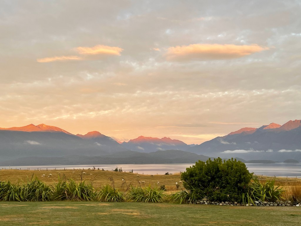 Let’s begin with now, where I stand (or rather lie as still in bed) in the Fiordland world of long time dear friends, waking to the lake and mountains climbing in the ranch slider to my super king bed in their gorgeous AirBNB appartment!