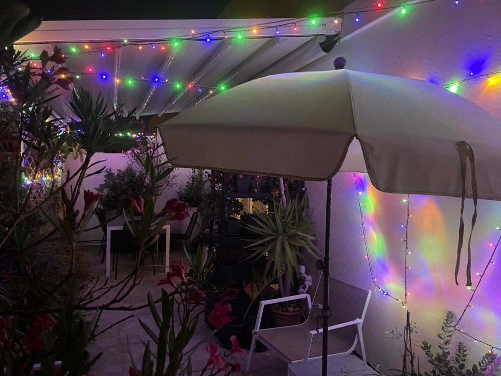 The evening party setting with fairy lights – and fireworks banging away in the next town until 11pm!