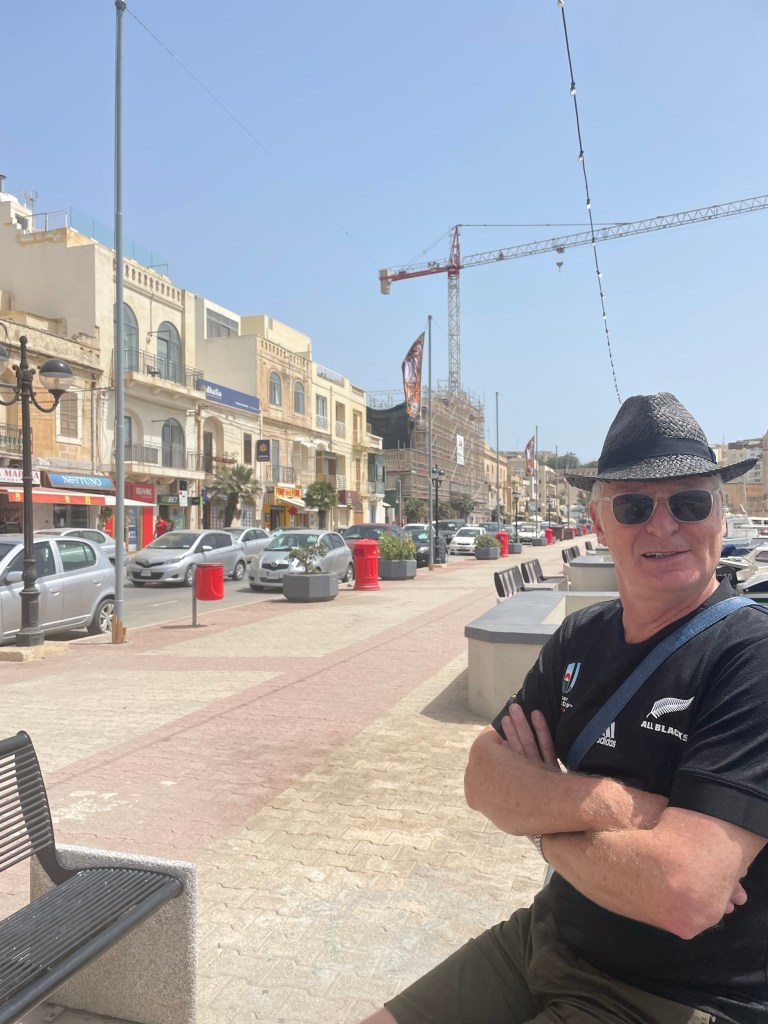 The afternoon was spent preparing for a drinks evening with the neighbours. Celebrating Rols becoming a Maltese citizen, Kevin spent the afternoon scrubbing the deck (in 40 degrees) Rols prepared nibbles, and my task was to make a fruit platter and asparagus rolls (something I do with my eyes closed) The fruit platter ✅ but the worst asparagus rolls I have ever made…the only bread available was toast thick and hard – consequently when rolled they looked like cracked pavements! I did need to explain to our guests that they do taste better than they look! A great evening socialising with all the apartment block residents, neighbours from across the road and both sides! Late night for me almost midnight!